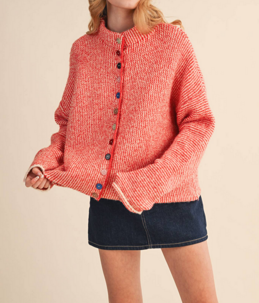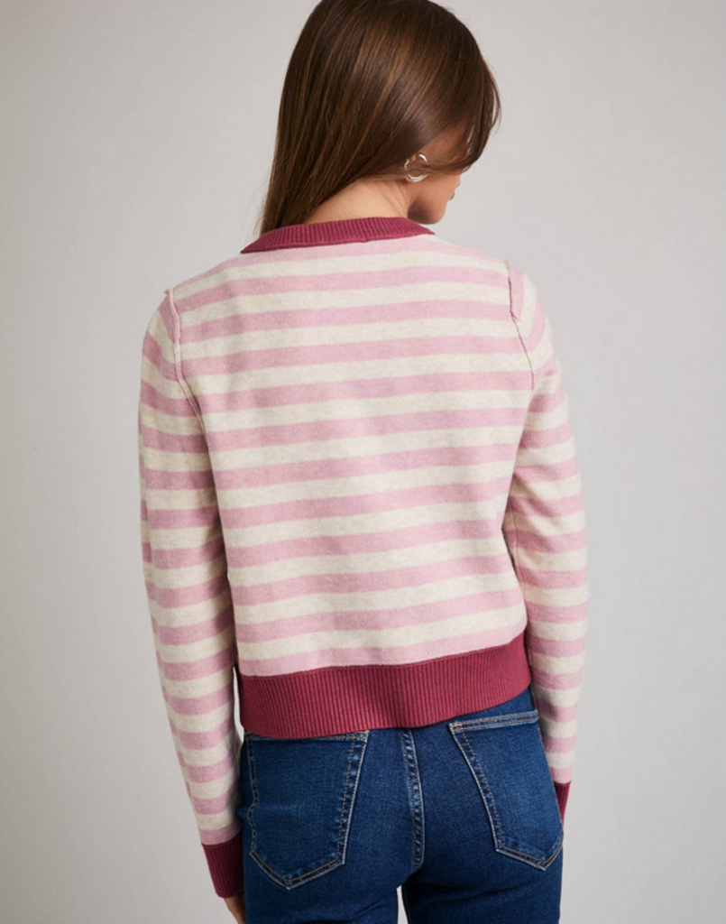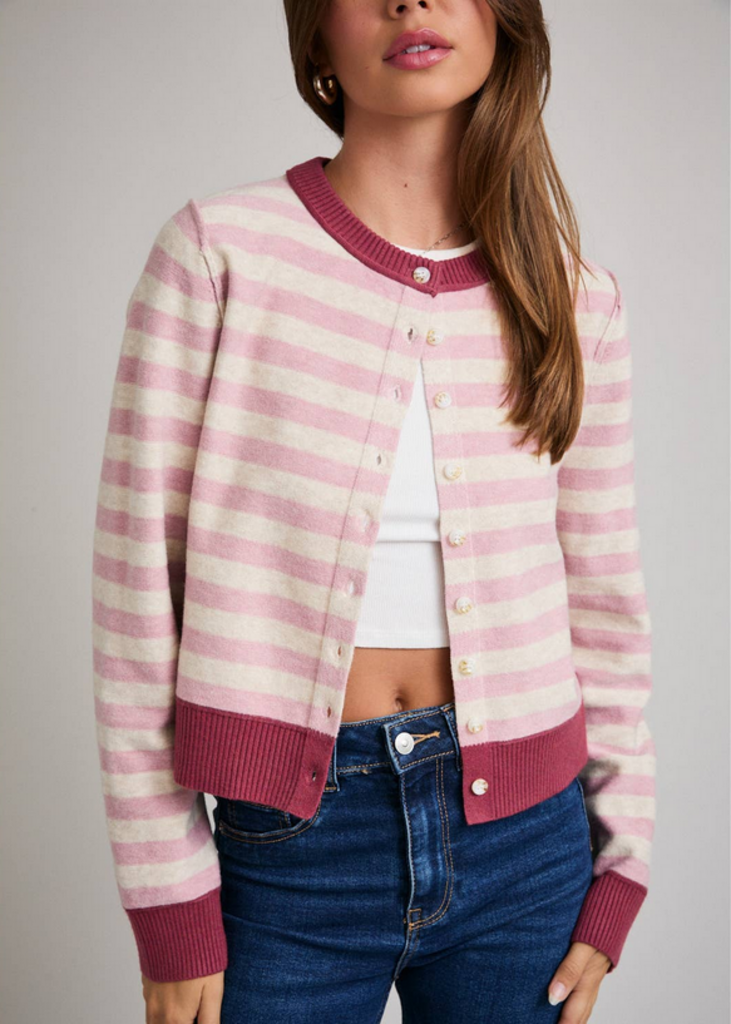 SMALL Pink Long Sleeve Striped Cardigan