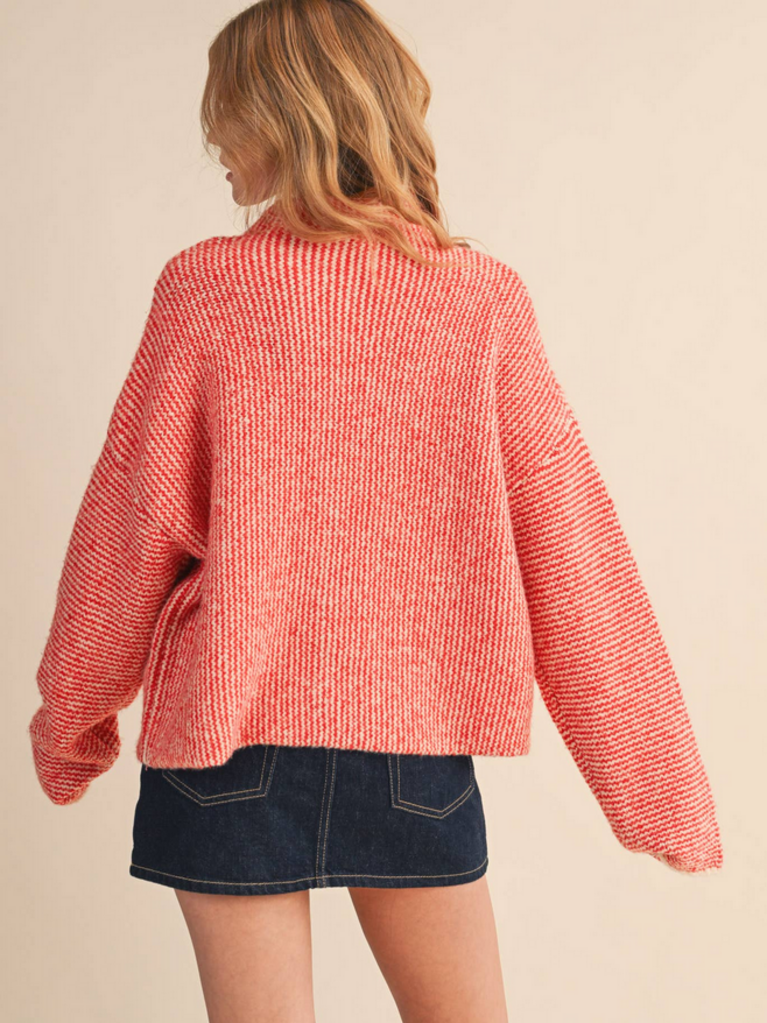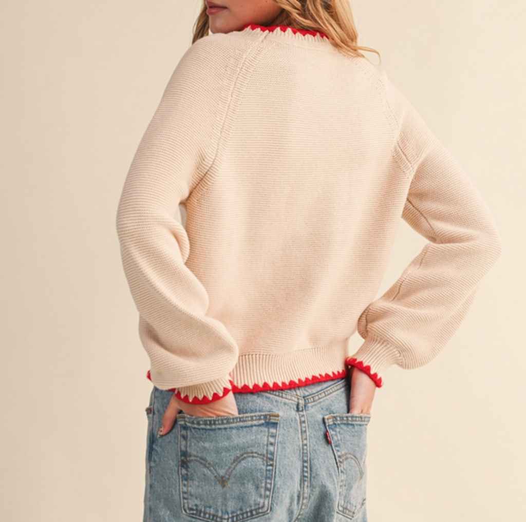 SMALL Red Contrast Stitch Puff Sleeve Sweater