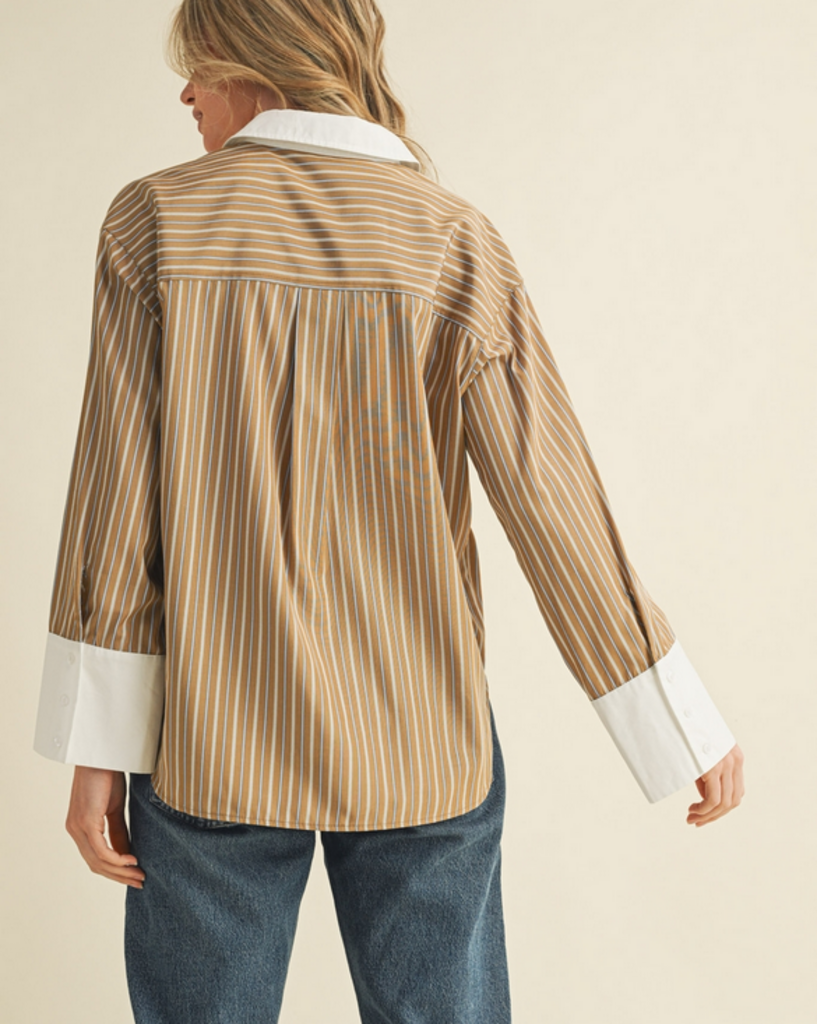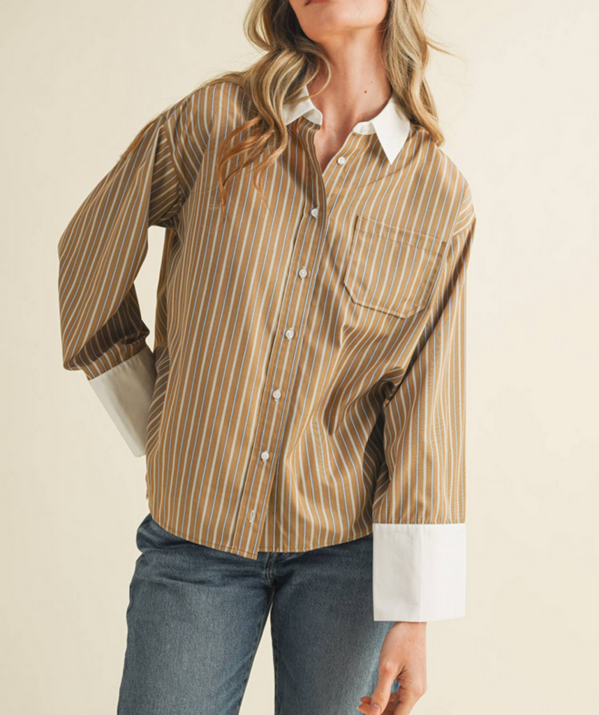 MEDIUM Brown Wide Cuff Button Down