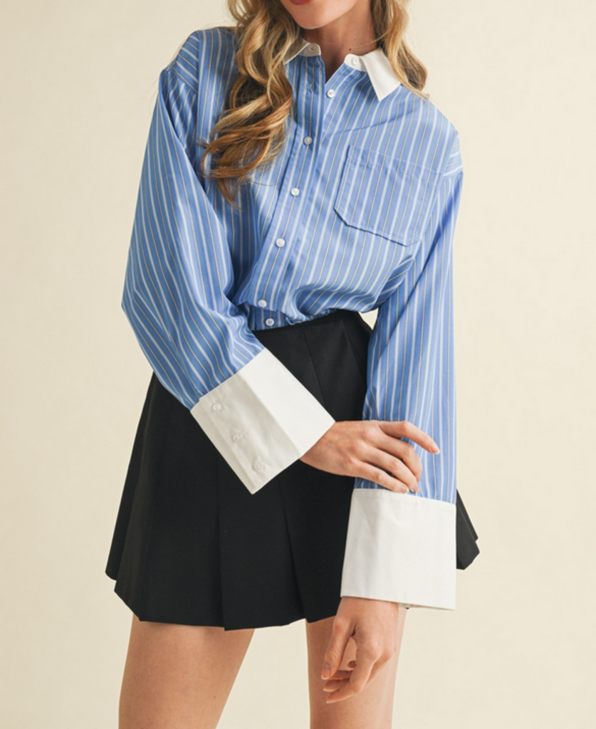 SMALL Blue Wide Cuff Button Down
