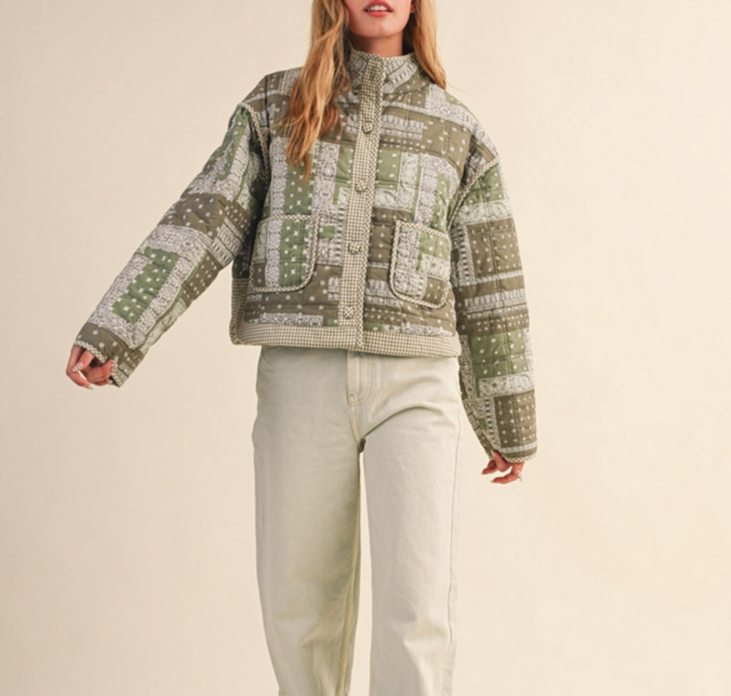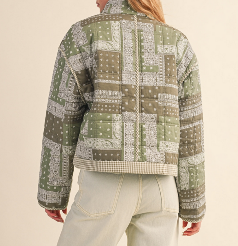 MEDIUM Olive Bandana Quilted Jacket