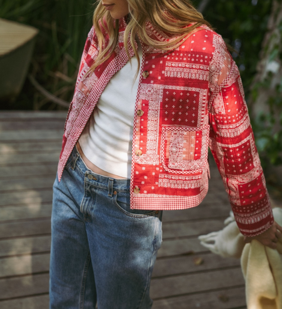 SMALL Red Bandana Quilted Jacket