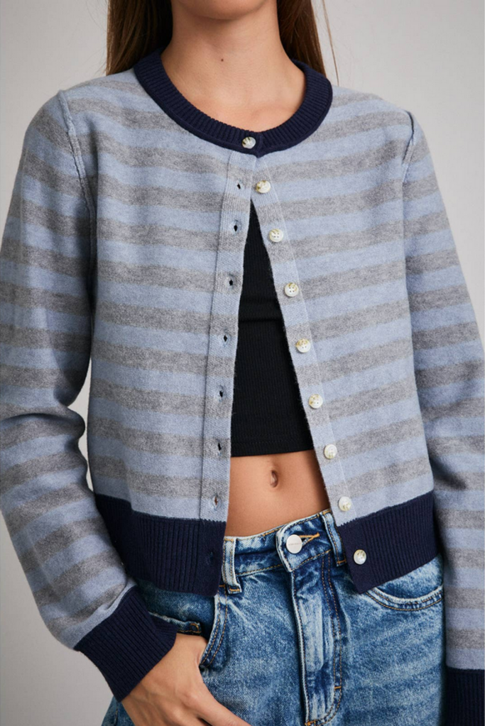 XS Blue Long Sleeve Striped Cardigan