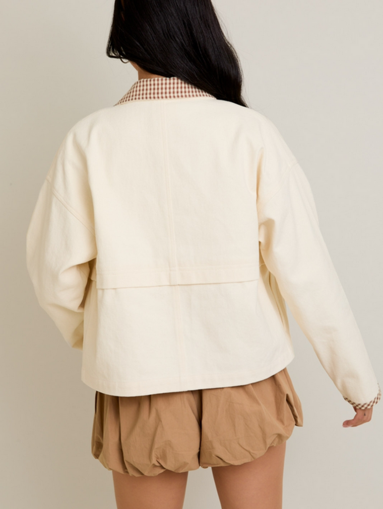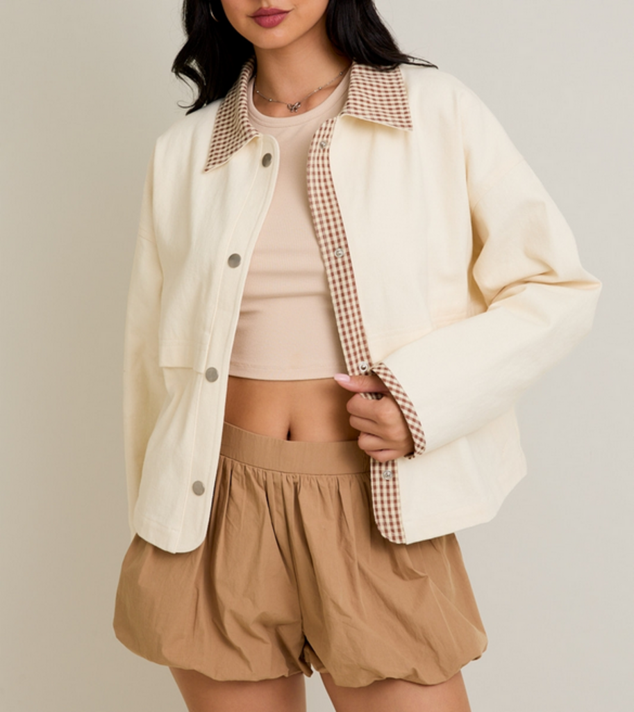 SMALL Cream Shacket with Gingham Collar